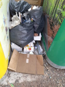 Autour de certains PAV, des sacs d’ordures et encombrants jonchent le sol. Ces dépôts sauvages ne doivent en aucun cas remplacer les bacs d’ordures ménagères, la déchèterie ou les colonnes de tri. Ils créent des risques d’incendie, de blessures et peuvent gêner la circulation. Certains produits libèrent des substances polluantes. Ils attirent aussi des nuisibles et dégradent l’image de la commune.