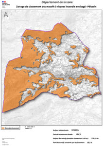 À l’échelle communale, la carte de zonage émise par la préfecture de la Loire indique que 93,7 % des massifs forestiers sont classés à risque, ce qui représente près de 50 % du territoire communal. Ce document constitue un outil de référence pour mieux comprendre l’exposition du territoire.