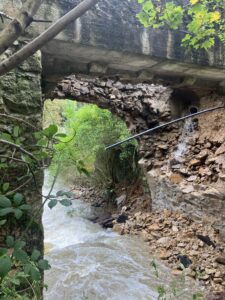 La crue exceptionnelle, avec plus de 200 mm de pluie tombée en moins de 24 heures, a causé de nombreux dommages au pont du Régrillon :